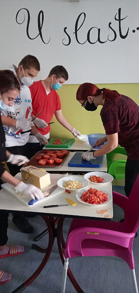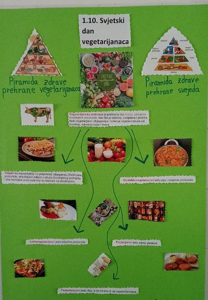 Naši učenici i djelatnici obilježili su Dan vegetarijanstva pripremom ukusnih obroka od namirnica biljnog podrijetla. Učenici su pripremali vege bruskete, a naše kuharice maneštru, tortu Mimoza, salatu s ječmom, blitvu i krumpir… Sve pripremljeno s užitkom smo pojeli!
