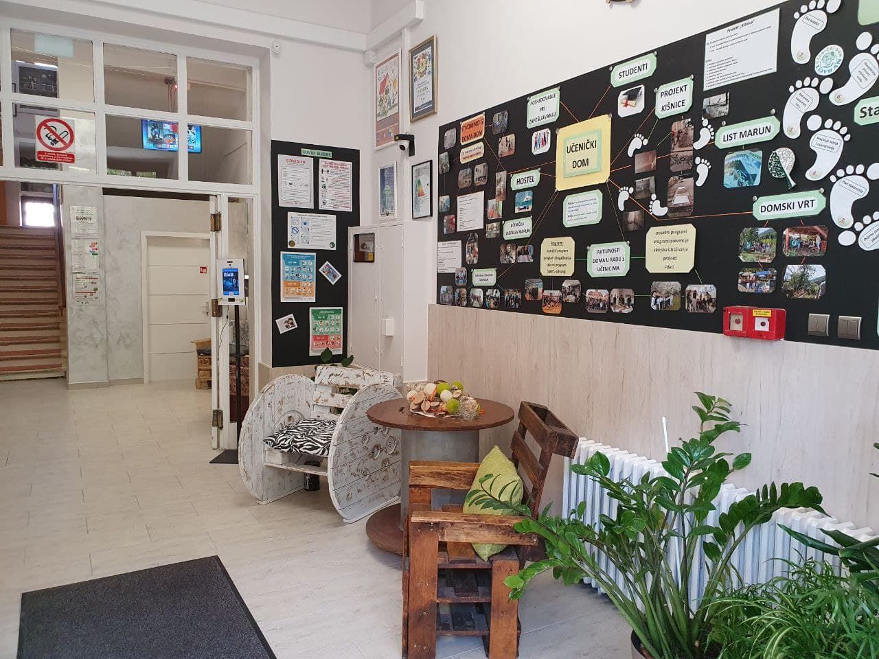 U cijelom prizemlju Doma promijenjeni su podovi, zidovi su oličeni a cijeli prostor upotpunjen je starim-novim detaljima pa se tako dobio estetski vrlo lijep i funkcionalan prostor koji odiše elegancijom ali i toplinom u kojem rado borave naši učenici.