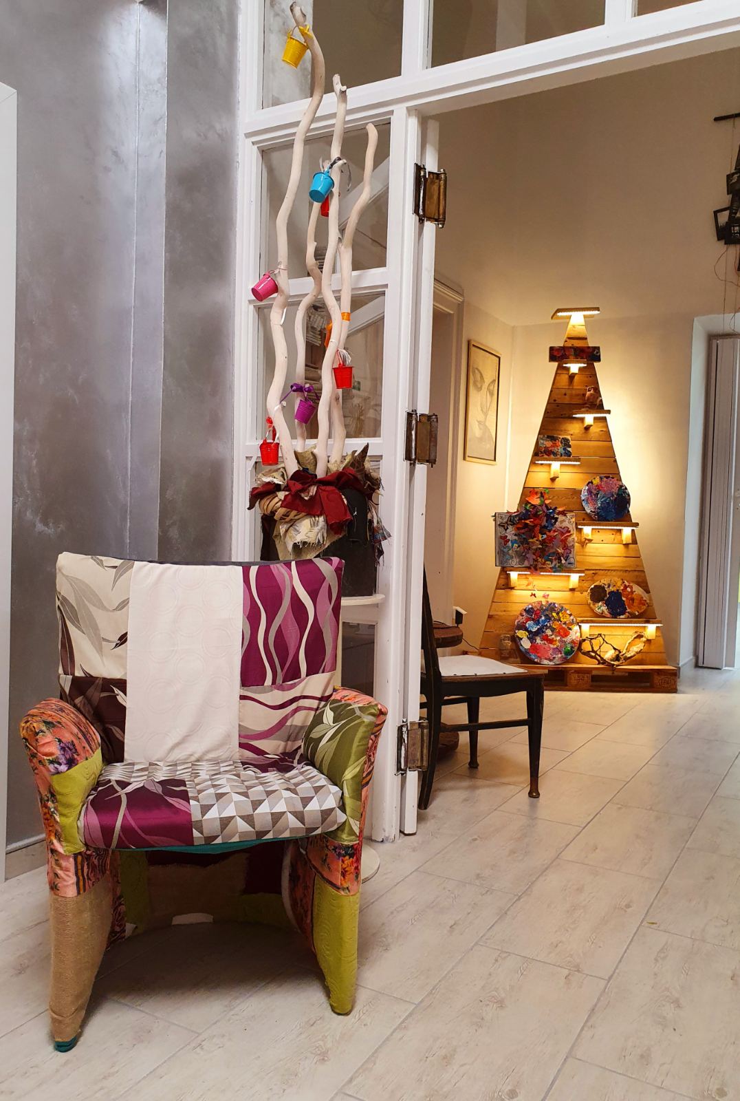 Ulazni hol i prizemlje Doma tijekom mjeseca travnja dobili su novo ruho, uređeno kao izložbeni prostor naših ekodizajniranih uradaka, novih slika - učeničkih uradaka i redizajniranog postojećeg starog namještaja.